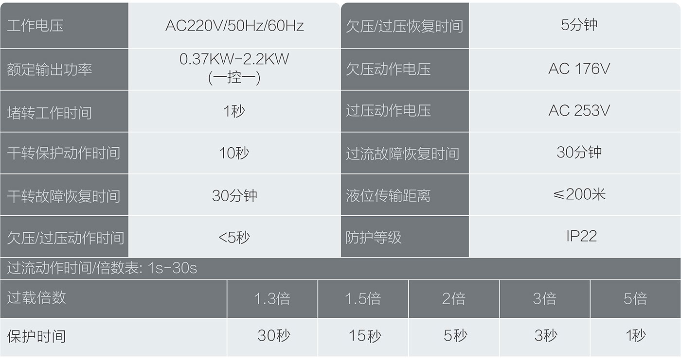 1.適用于0.37-2.2KW直接啟動(dòng)的單相深井泵、管道泵等的自動(dòng)液位、壓力控制及保護(hù);