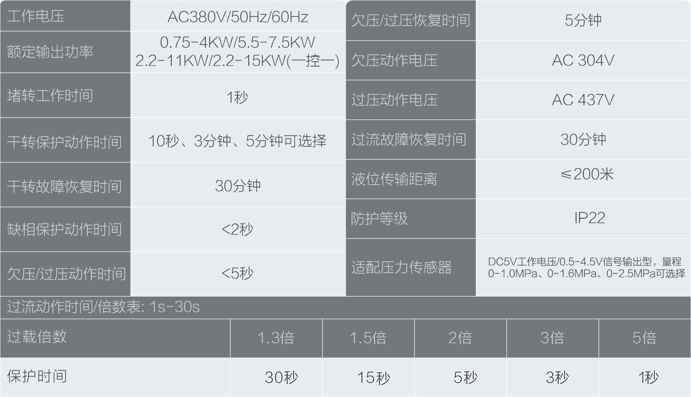 11.水泵干轉電流值可調(額定電流的70%、80%、85%);
