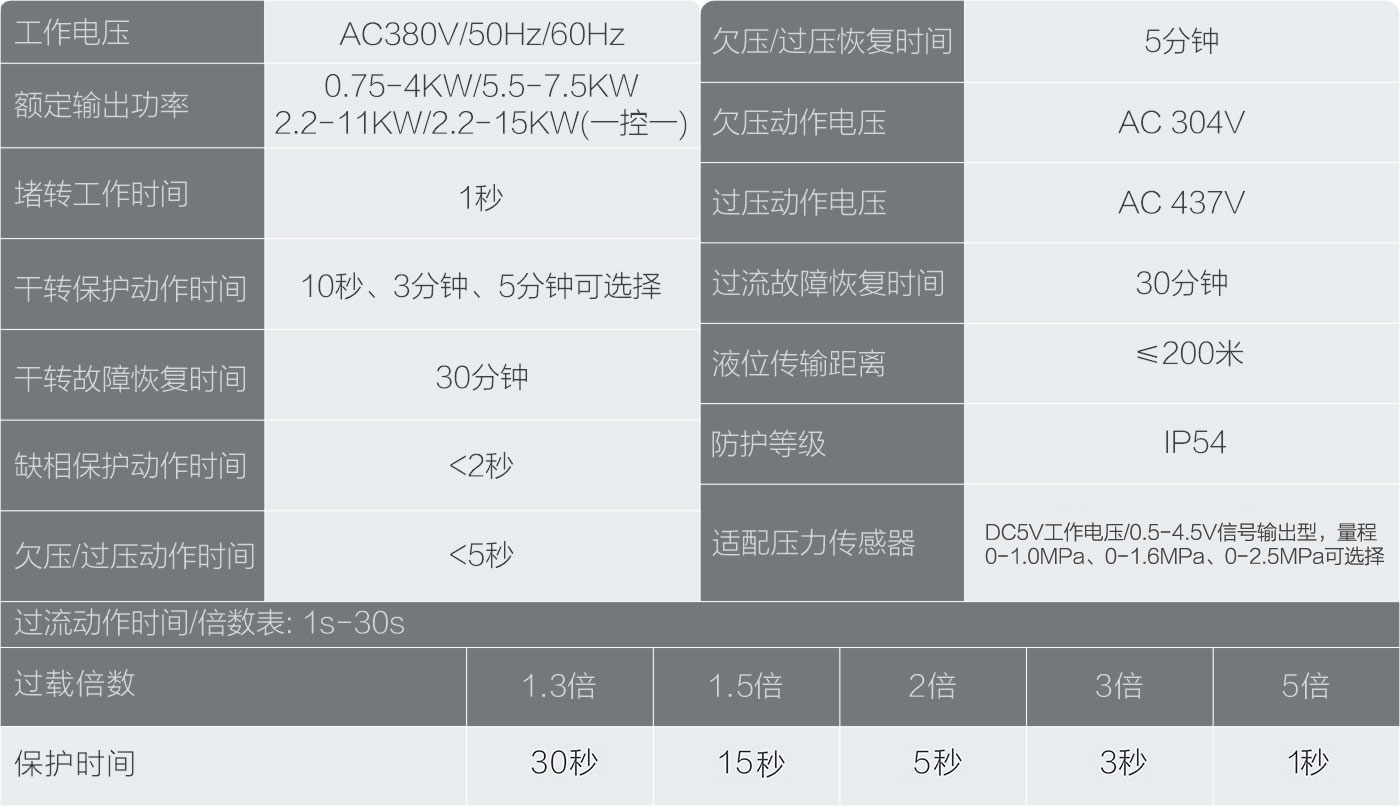 10.水泵干轉(zhuǎn)保護時間可調(diào)(10秒、3分鐘、5分鐘),適用于不同水泵和工況;