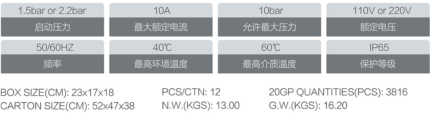 A: PC-10A:安裝時,啟動壓力可調(diào)節(jié),調(diào)節(jié)范圍:1.5BAR-3.0BAR