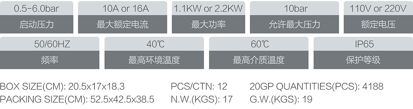 5.過壓力保護,系統(tǒng)壓力超過10bar自動停止水泵工作